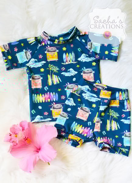 Surf's Up Swim Rash Guard & Bummies Shorts Set