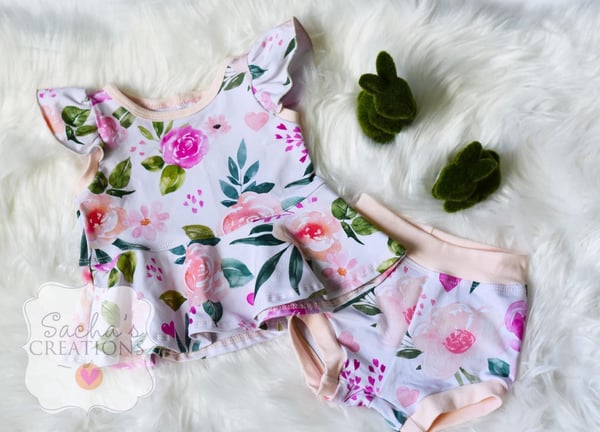 Spring Floral Peplum Top & Bummies Set